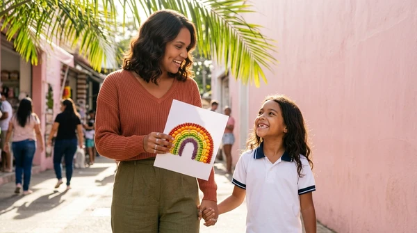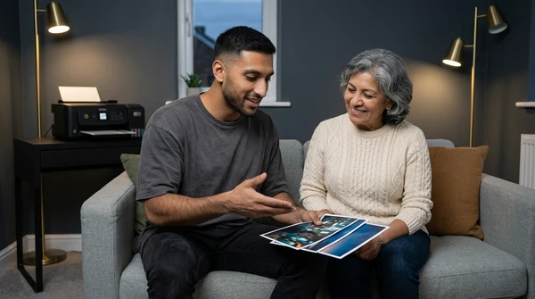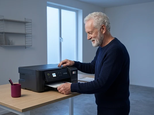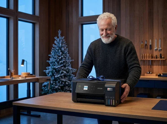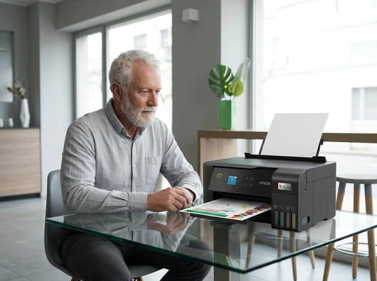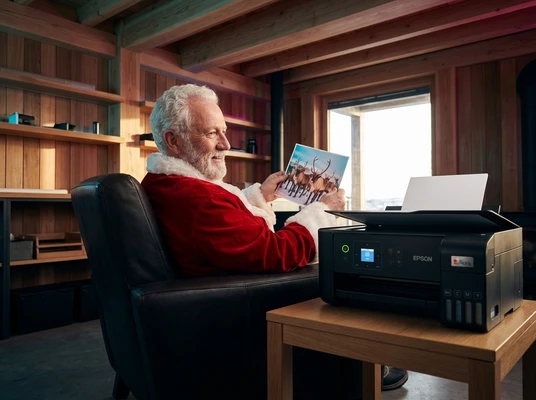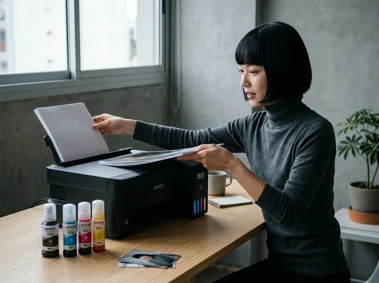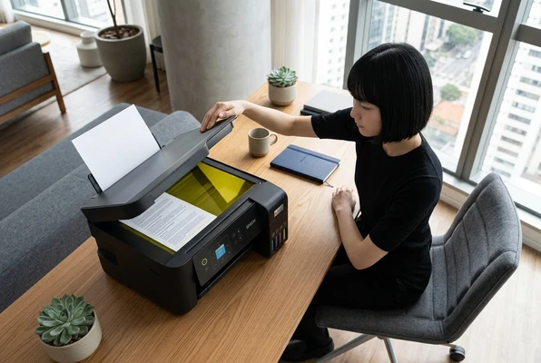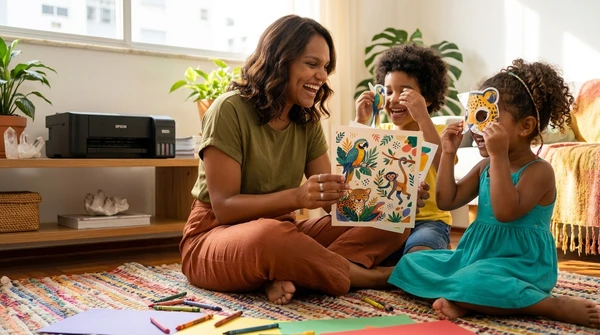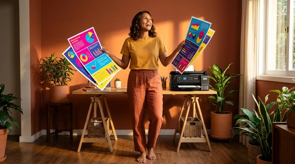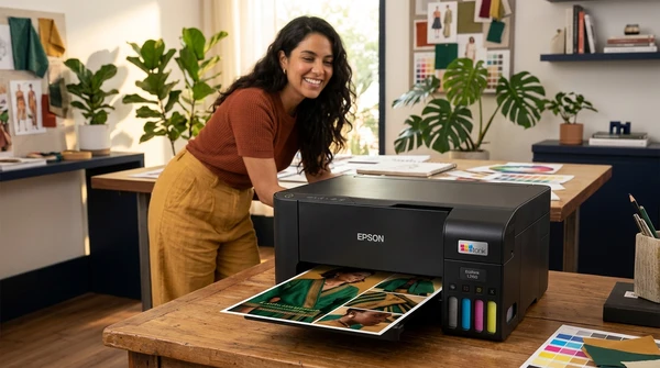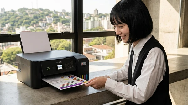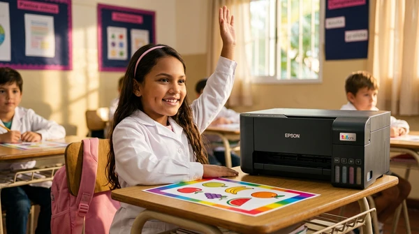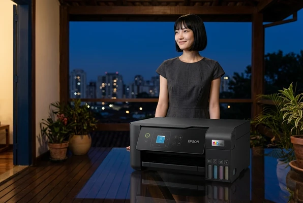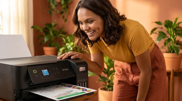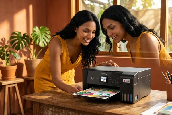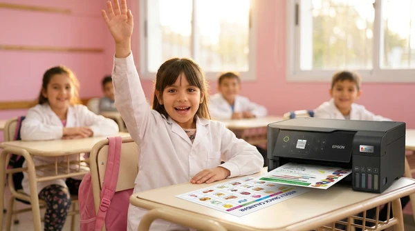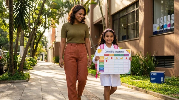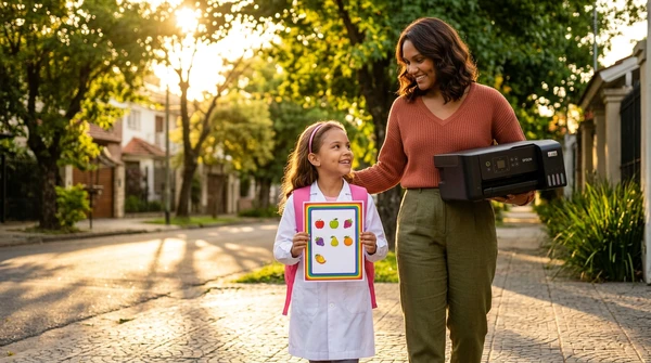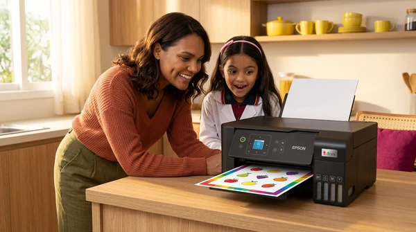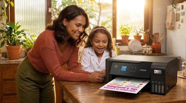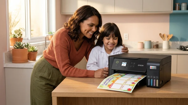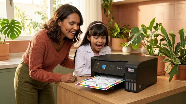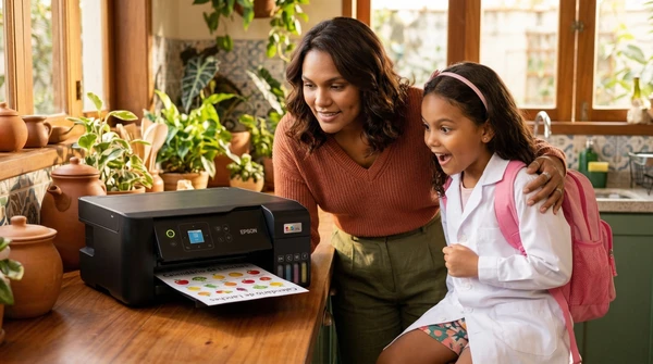 Luciana Oliveira with her child preparing a print out for the school using the EcoTank L3260